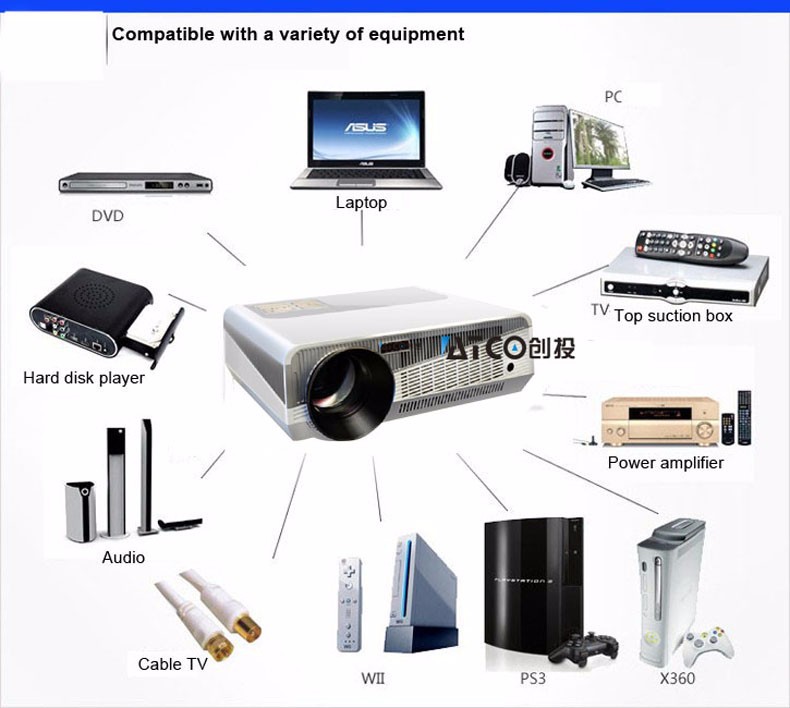 Android HD LED projetorATCO Brightest LED TV projetor Full HD 1080 p Android WIFI Inteligente RJ45 3D Home theater jogo de vídeo Proyector projetores LCD BeamerPontos de venda:Ultra speed: processador Quad CoreAté 50horas de tempo de vida, ao longo da vida, economia de energiaTheater-nível hd: 1080 p hd, realizar seu sonho de assistir filmes em casa.Painéis de acabamento superior, design simples e suave outlook; foco manual.Fantasia 3D: suporte vermelho azul, Vermelho Verde 3D, trazer-lhe uma experiência maravilhosa e envolvente.Android 4,4 sistema de operação, fácil de usar.5500Led Lumens = 2000 ANSI lumens DLP, resolução nativa: 1280*800 pixels, suporte 1080 p.Melhor para home theater, não é bom para Microsoft Excel, Word, PPT.RJ45/2USB/2 HDMI/SD/VGA/TV/AV/ TF-Card entradas --- O mais multifuncional home theater projetor